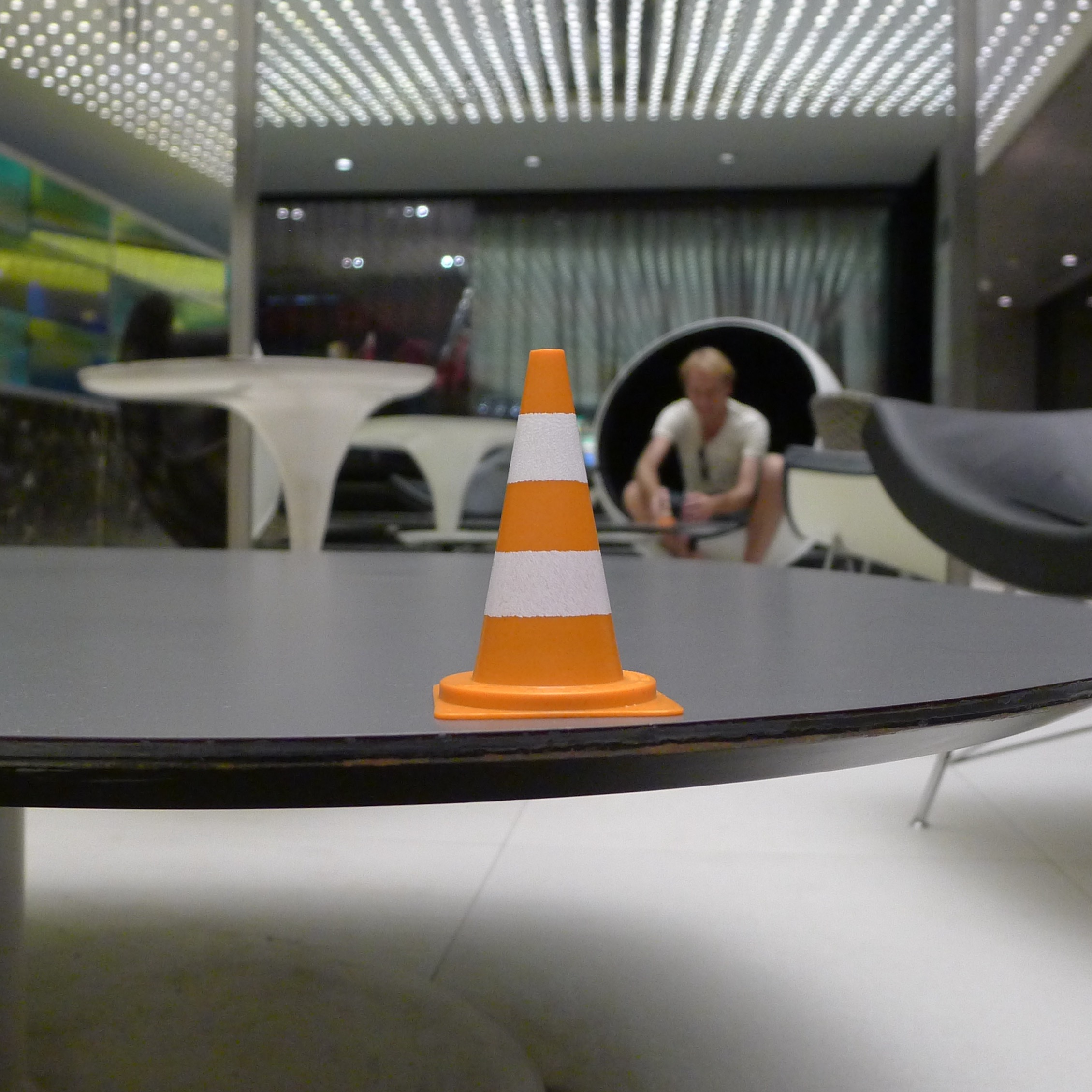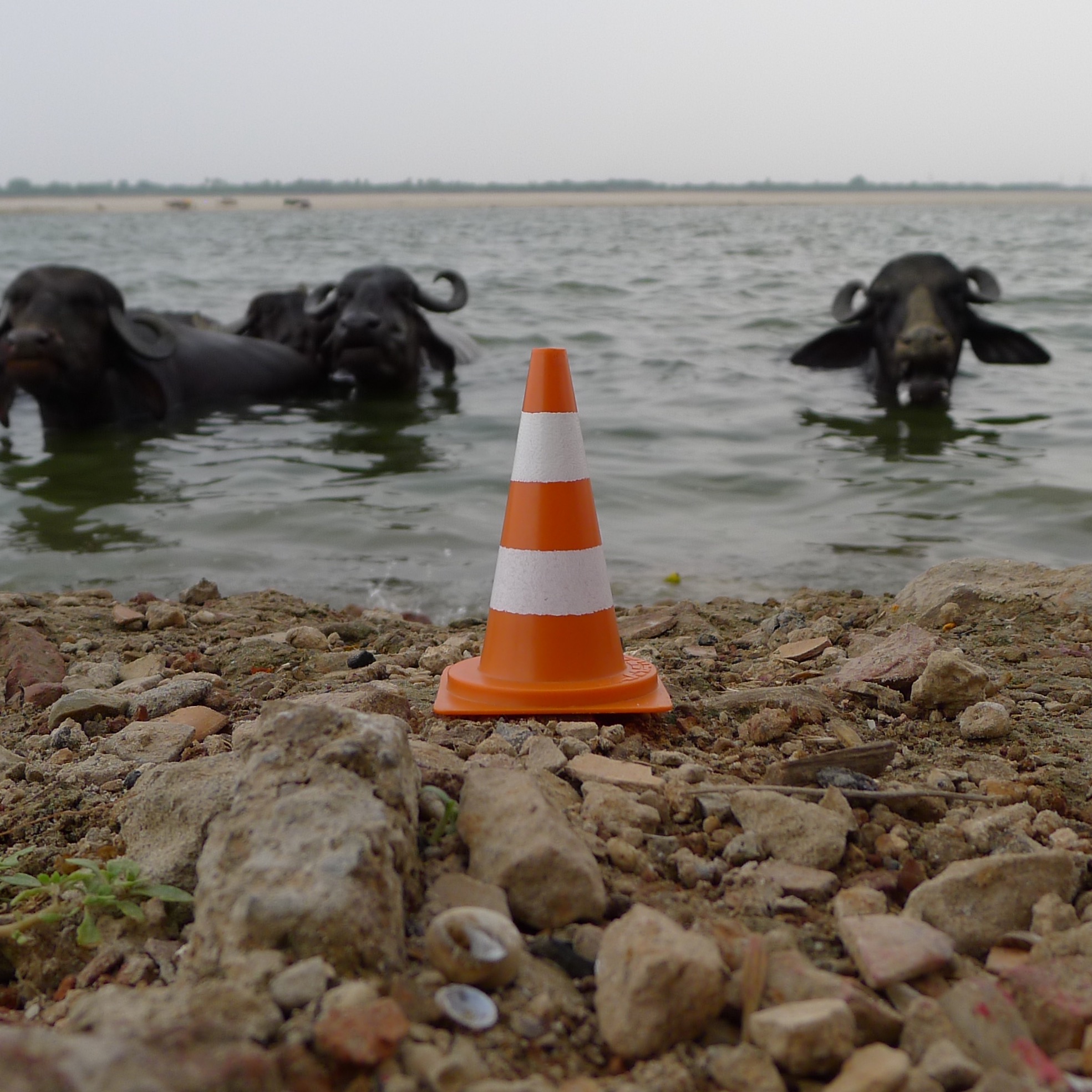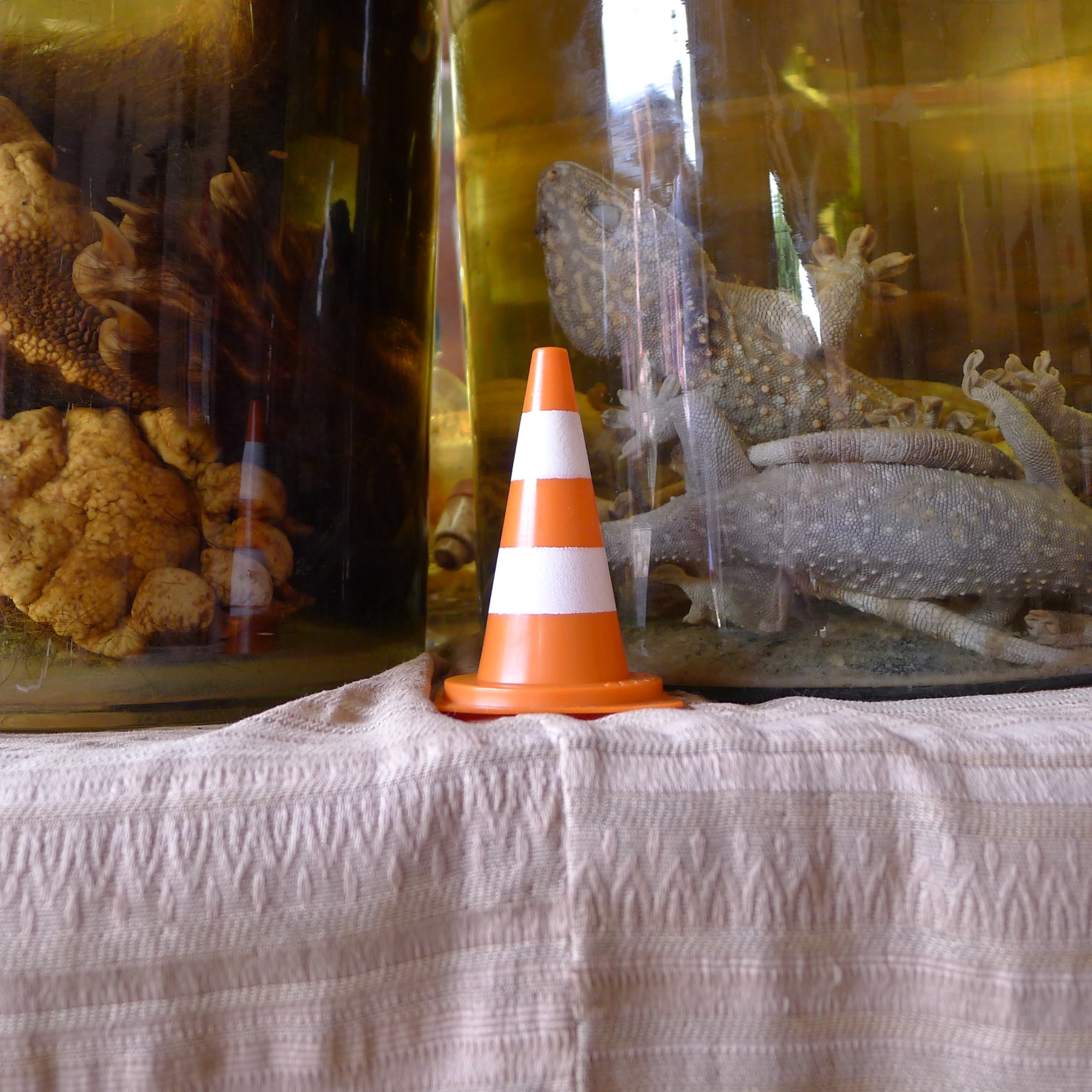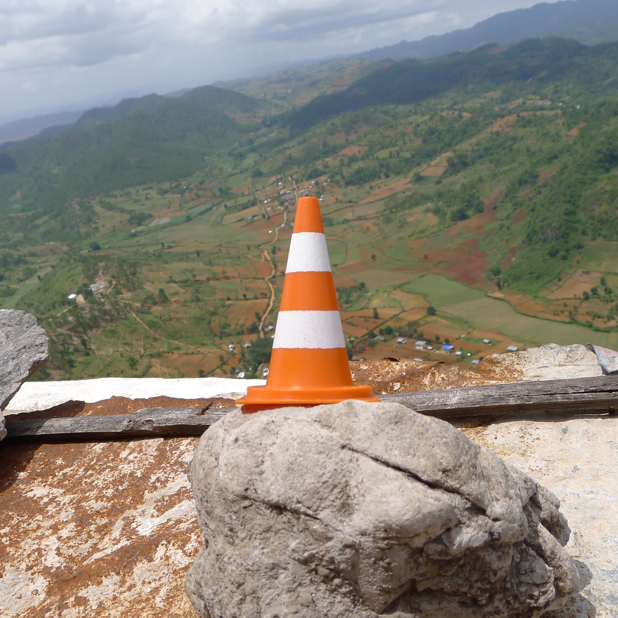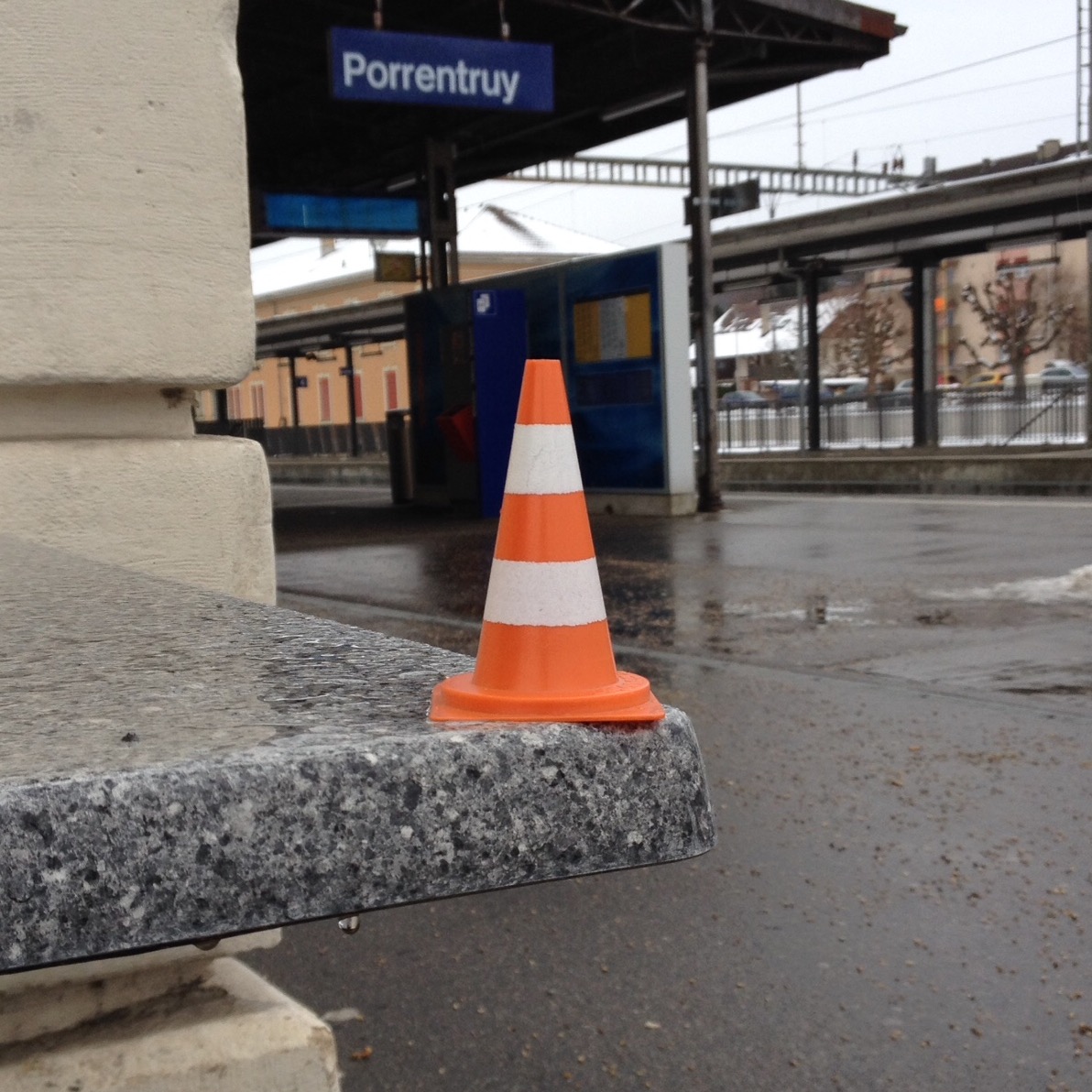 En écho aux installations in situ des deux artistes jurassiens, qui démultiplient des modules de cônes de Lübeck (ou cônes de signalisation) grandeur nature en porcelaine dans des mises en scène souvent spectaculaires, Yves Hänggi prend le parti de faire voyager autour de la planète un « mini lubi », reproduction miniature en matière plastique de l’objet original (hauteur : 5 cm / poids : 15 gr).