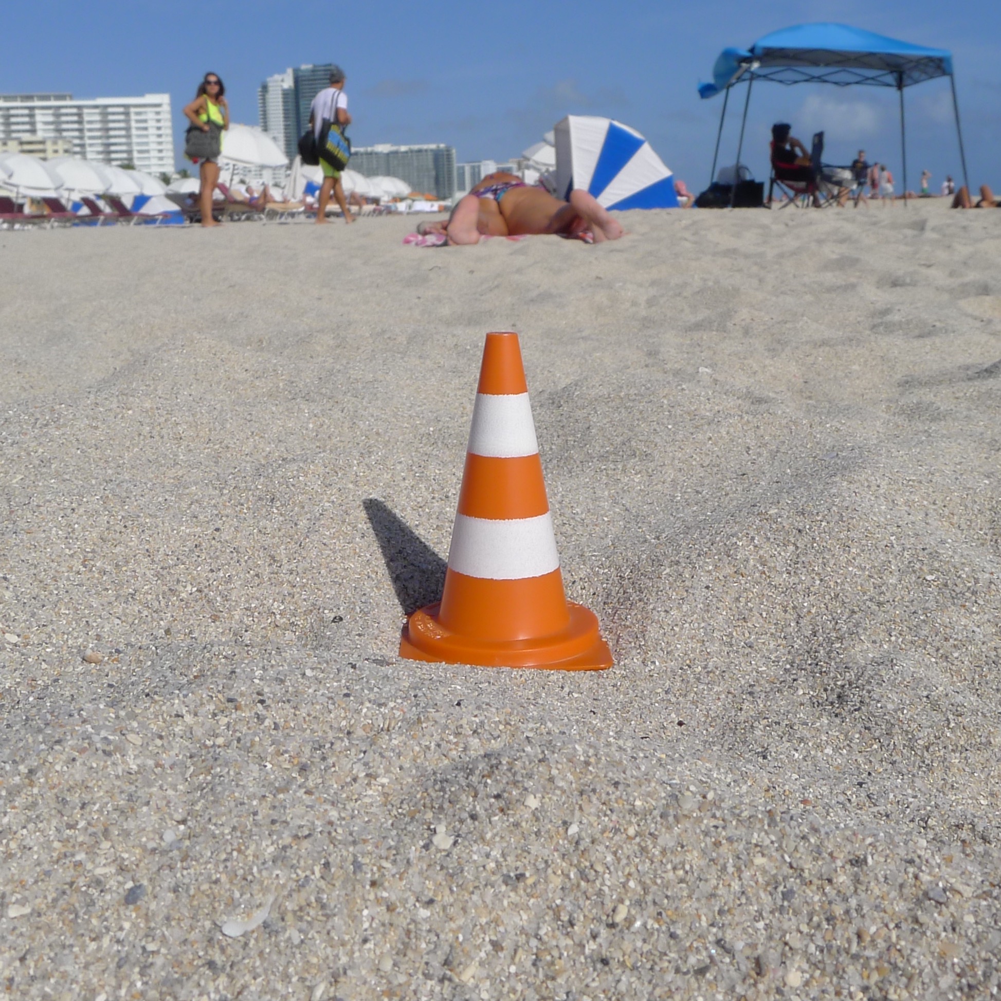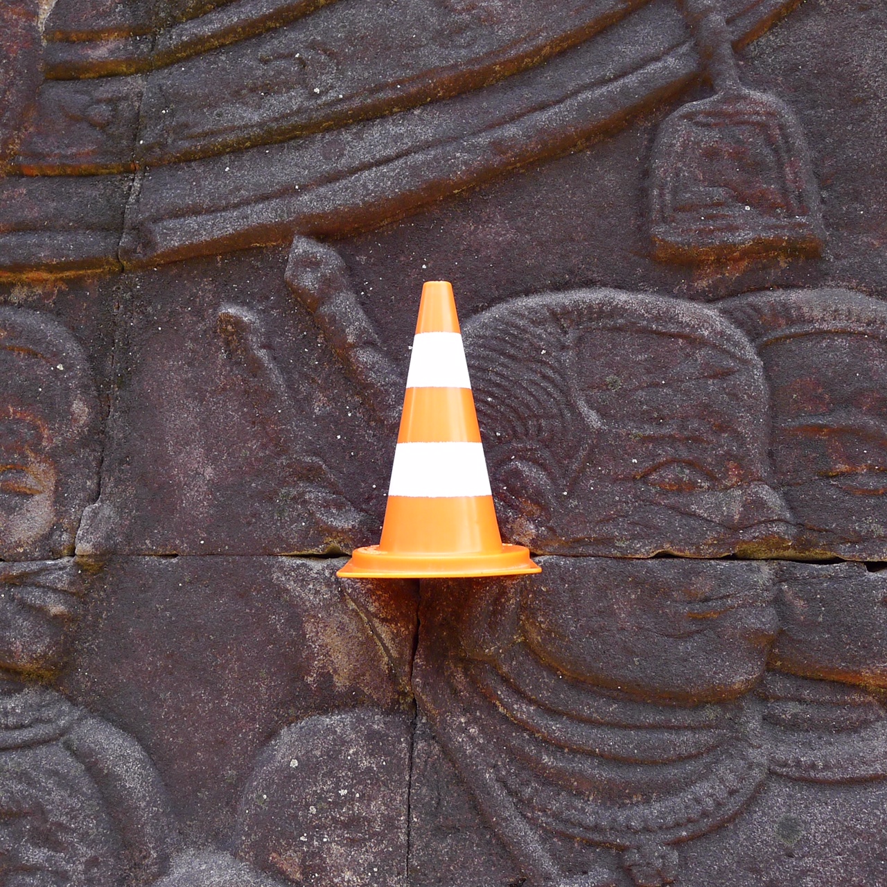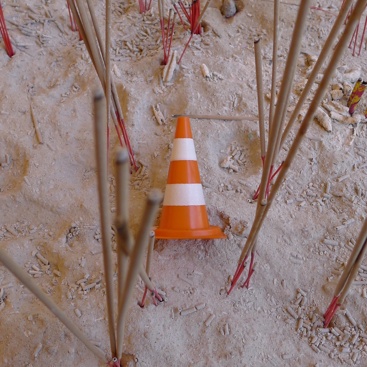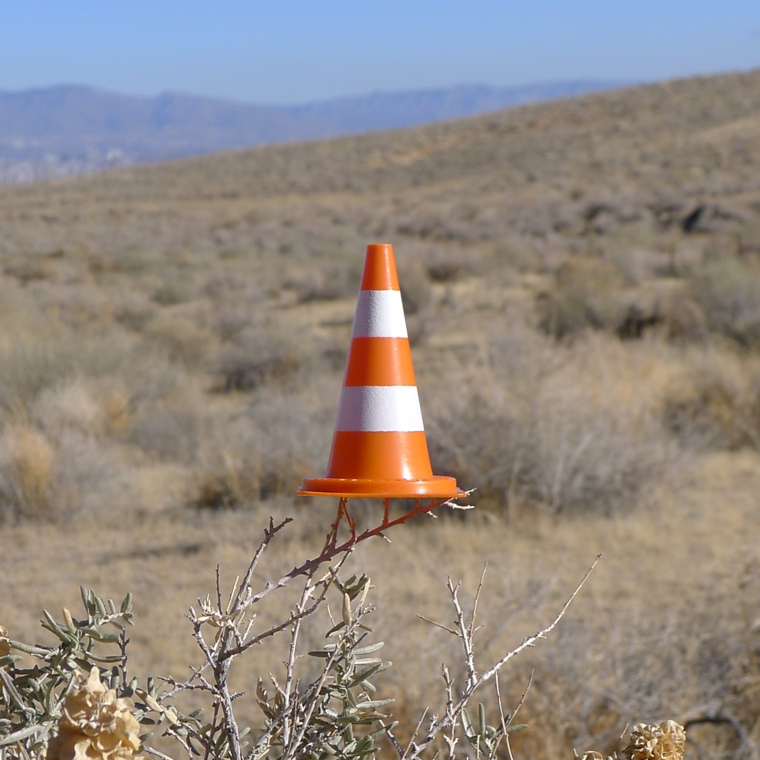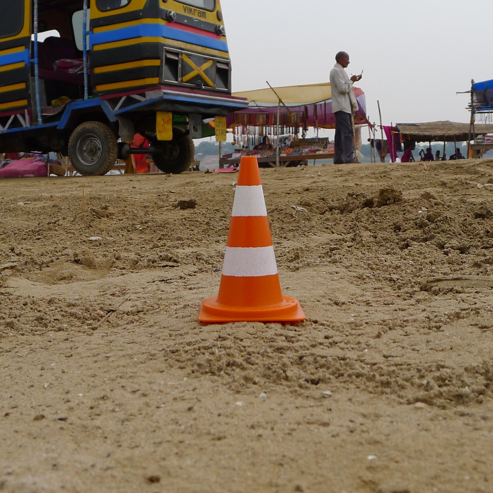 En écho aux installations in situ des deux artistes jurassiens, qui démultiplient des modules de cônes de Lübeck (ou cônes de signalisation) grandeur nature en porcelaine dans des mises en scène souvent spectaculaires, Yves Hänggi prend le parti de faire voyager autour de la planète un « mini lubi », reproduction miniature en matière plastique de l’objet original (hauteur : 5 cm / poids : 15 gr).