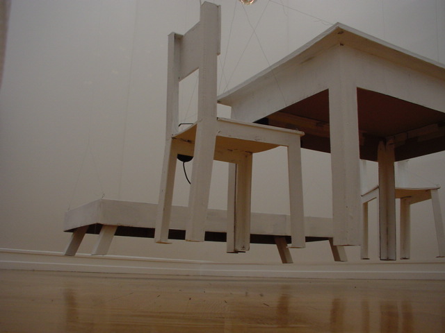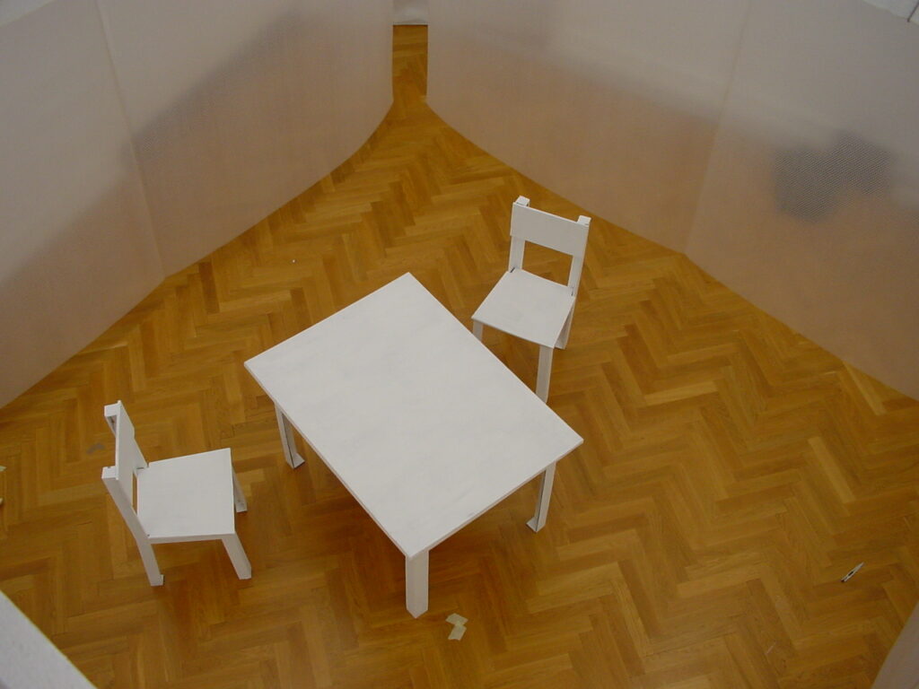 Jonglerie de Berne Kunsthalle BerneWeihnachtausstellung19.12.2002 – 12.01.2003Jonglerie de Berne, 2003Papier bulle,bois, carton,ventilateur,néonboule-disco,révolver4 x 4 x 4 m