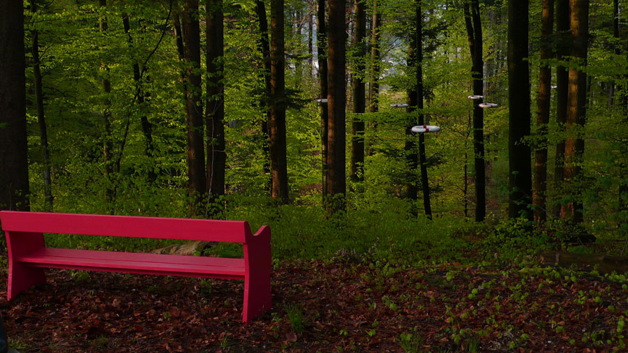 que le spectateur peut contempler, installé sur un banc de bois. Le plan