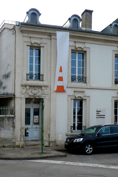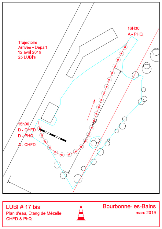 Pour l’occasion les deux artistes CHFD & PHQ interviennent avec une proposition à dimension balnéaire et ludique : Les Lubis * gonflable créés spécifiquement pou l’occasion arborant le blason de Bourbonnes-les-Bains. Les pièces ont été conçues selon le principe de la bouée. Lestées, elles s’apparente  alors à des balises. Elles marquent ainsi un tracé