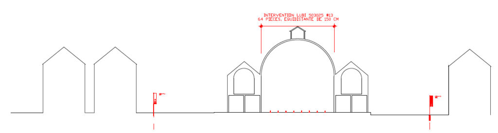 Cet édifice majestueux inauguré en 1812 accueille la proposition remarquable LUBI 503025#13 du collectif suisse, montrant soixante quatre répliques en porcelaine de cônes de signalisation dont la disposition est savamment orientée vers la ville de Lübeck.