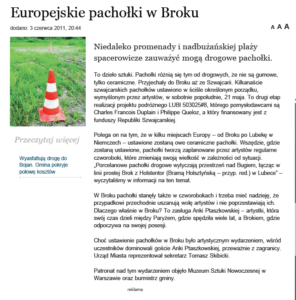 Brok constitue la huitième étape du projet – itinéraire, après LUBI 503025#7 à Paris. Les cônes de porcelaine délimitent un espace aux abords du Bug, pour tendre vers la ville de Lubeck par une ligne droite reliant Brok à la Holstentor de Lubeck.
