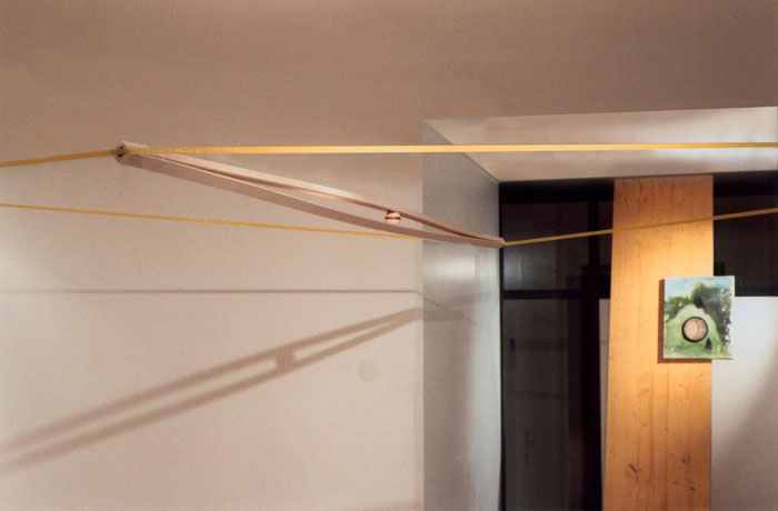 (Texte rédigé suite à la présentation de l’artiste par Johannes Gachnang lors du vernissage de l’installation intitulée » In Tension » dans la galerie de la FARB, le 15 décembre 2000. Traduit de l’allemand par Sonja Queloz.)